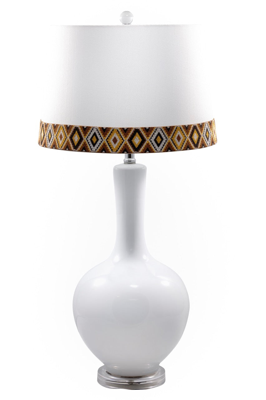 This eye catching band is made of elastic material which gives you the ability to easily attach to any lampshade. To ensure a perfect fit, simply measure the top diameter. Find the corresponding size and click. It’s that simple. We take care of the math.