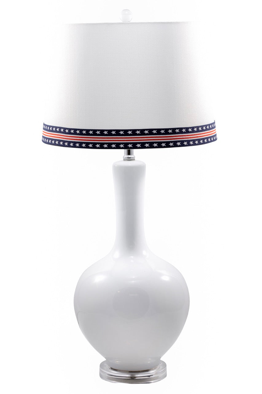 This eye catching band is made of elastic material which gives you the ability to easily attach to any lampshade. To ensure a perfect fit, simply measure the top diameter. Find the corresponding size and click. It’s that simple. We take care of the math.