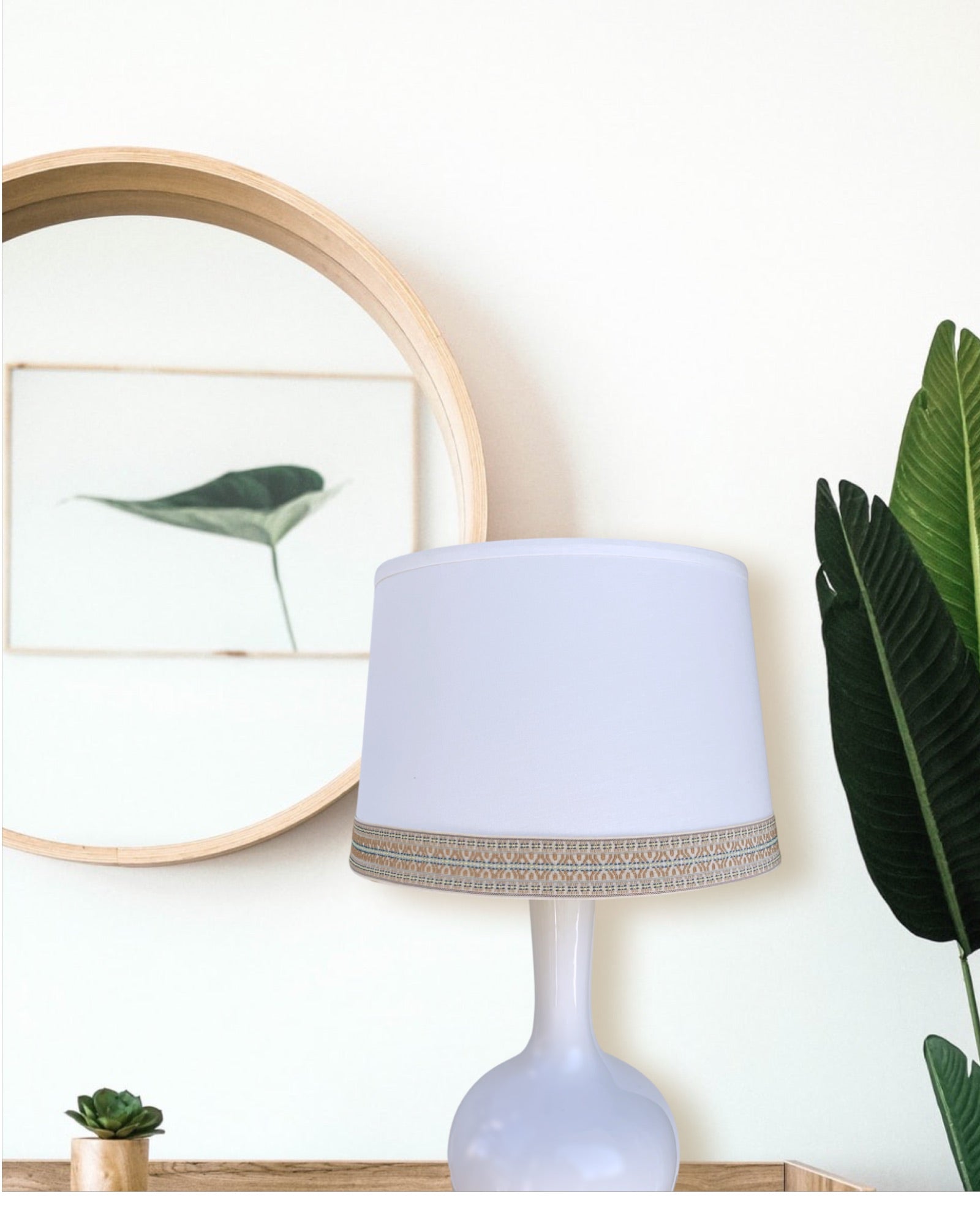 This eye catching band is made of elastic material which gives you the ability to easily attach to any lampshade. To ensure a perfect fit, simply measure the top diameter. Find the corresponding size and click. It’s that simple. We take care of the rest of the math.